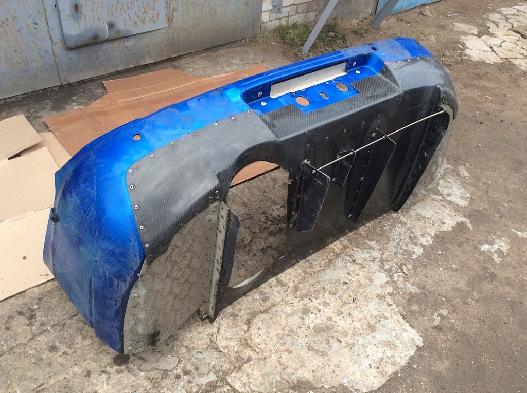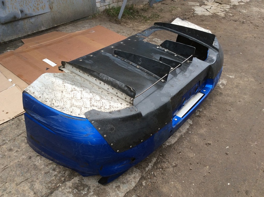 • Бампер задний с кастомной юбкой с дефектами карбон для Subaru Impreza 2 G11 GD 2005-2007 лиса 3-рестайлинг